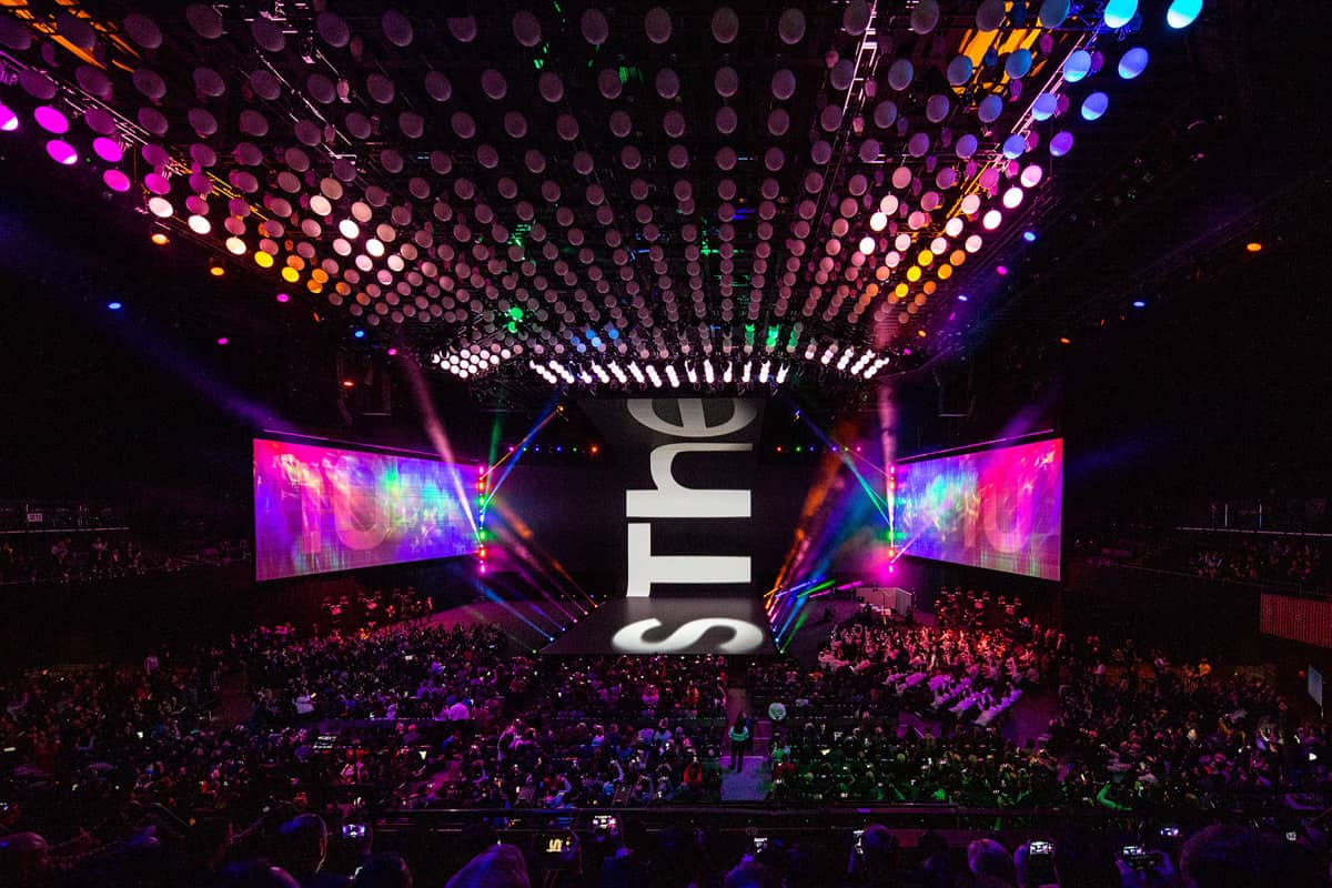 We leveraged state of the art show technologies, including a 30’h x 115’w three part LED screen, with additional LED stage floor and overhead LED canopy top screen, 478 motorized kinetic globe lights, large scenic elements and innovative lighting design to make sure everyone viewing it live and online saw the products bold and beautiful center-stage.